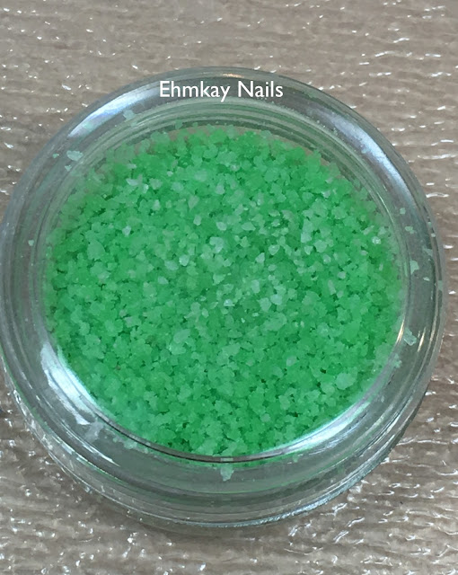 Here's how the glitter arrives. I really struggled to open it, and was so nervous of spilling it everywhere lol. It sort of looks like tiny pebbles. This glitter comes in 6 colors and I obviously chose the green.