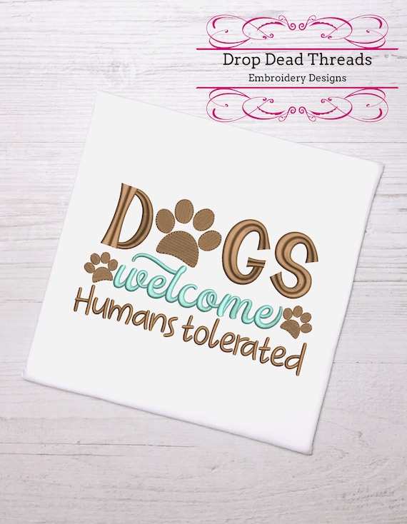 Dogs Welcome Humans Tolerated 3 Sizes Machine Embroidery Etsy