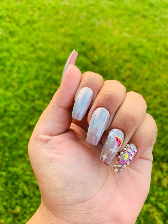 Holo Nails Colorful Nails Watermelon Nails Summer Nails Etsy